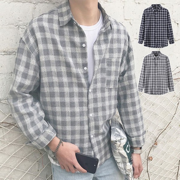 캐주얼 체크 셔츠 남자 간절기 루즈핏 긴팔 남방