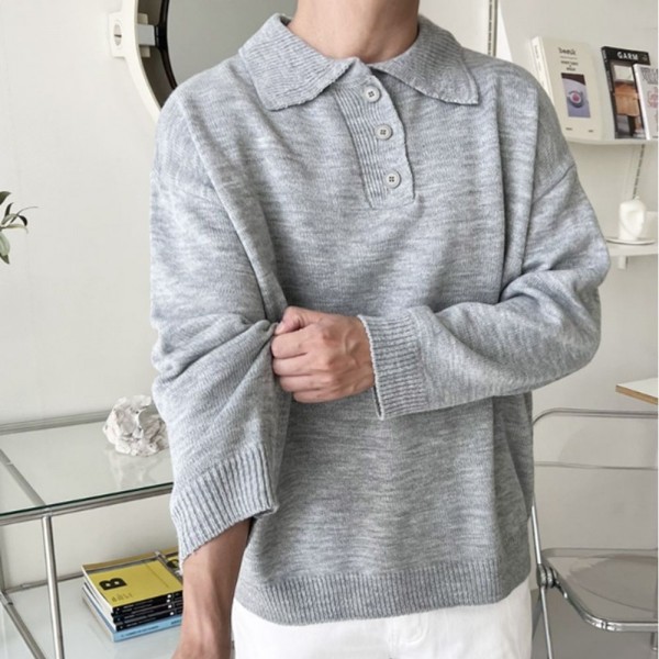 오버핏 남자 니트 봄 가을 카라넥 남성 니트 스웨터 > 패션의류·뷰티·잡화