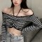 프릴 밴딩 오프숄더 홀터넥 슬림핏 크롭티